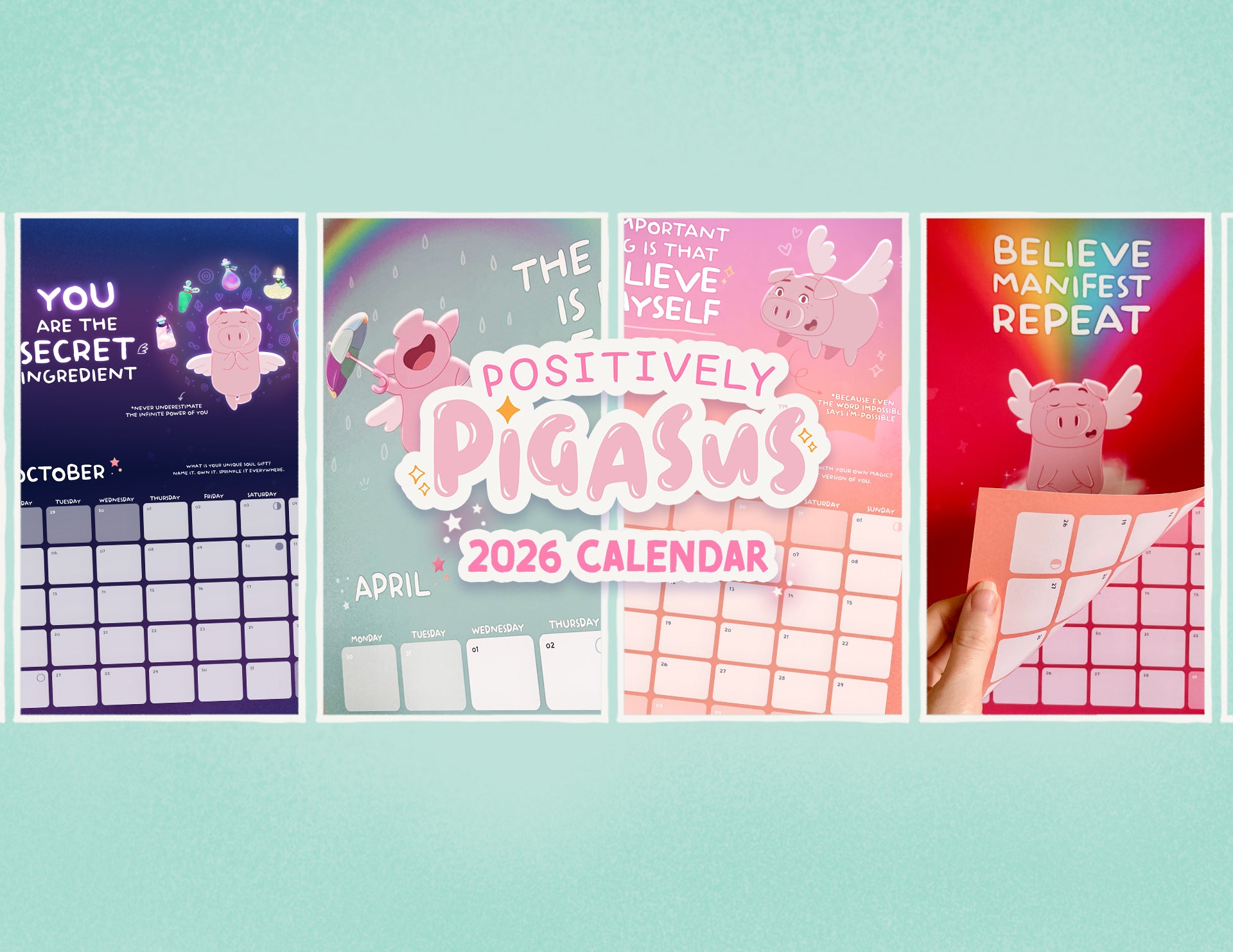 The Positively Pigasus 2026 Calendar is your gentle nudge from the universe to trust yourself, follow your heart, and keep believing!